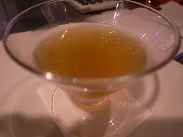 冷たいコンソメのスープである。なんとも繊細な味である。