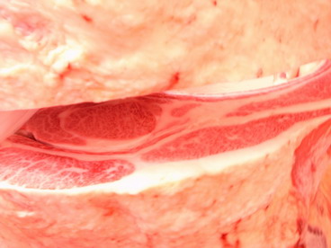 さっきの枝肉の真ん中の切れ込みからみえる肉の状態