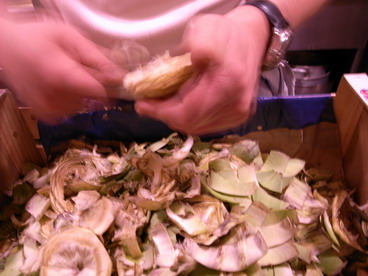 今日は西条市の野菜を使って料理をつくってください、ということで、お昼の時間に、32名のご予約がありました。お客さんは料理人の方も含め32人です。
