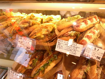 店内は狭いので、こんでくると横をむいたり後ろ向いたりちょっと体をくるくる回転しながらパンをかいます。大阪人は狭くておいしいお店が大好き。狭さも魅力。パンが迫ってくる感じがいい。