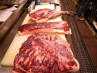 手前からバラ、ロース、足です。丹波のほうの肉屋さんもこの肉買いにきはるらしいです。